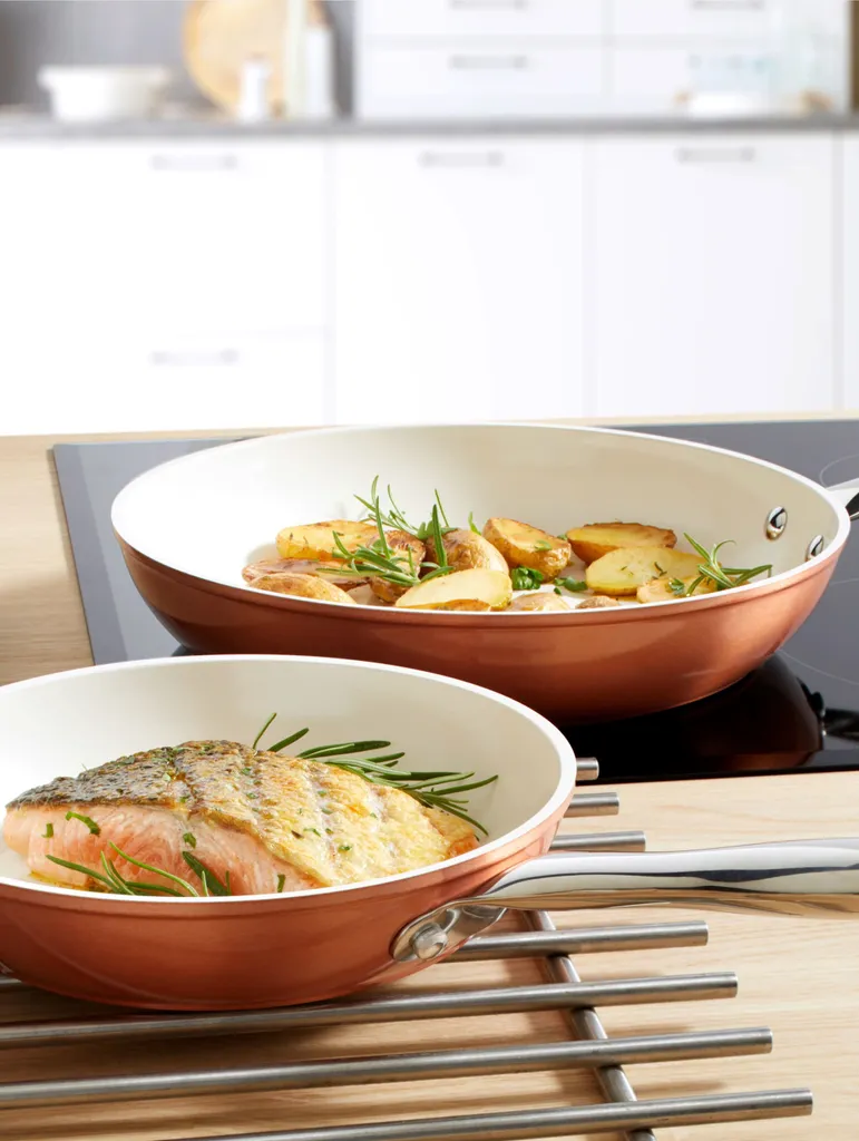 GSW Pfannen-Set Kupfer-Bronze 2-tlg., Aluminium, Edelstahl Rostfrei, Bratpfanne ø Ca. 20 X H 4,3cm / ø Ca. 28 X H 5,4cm