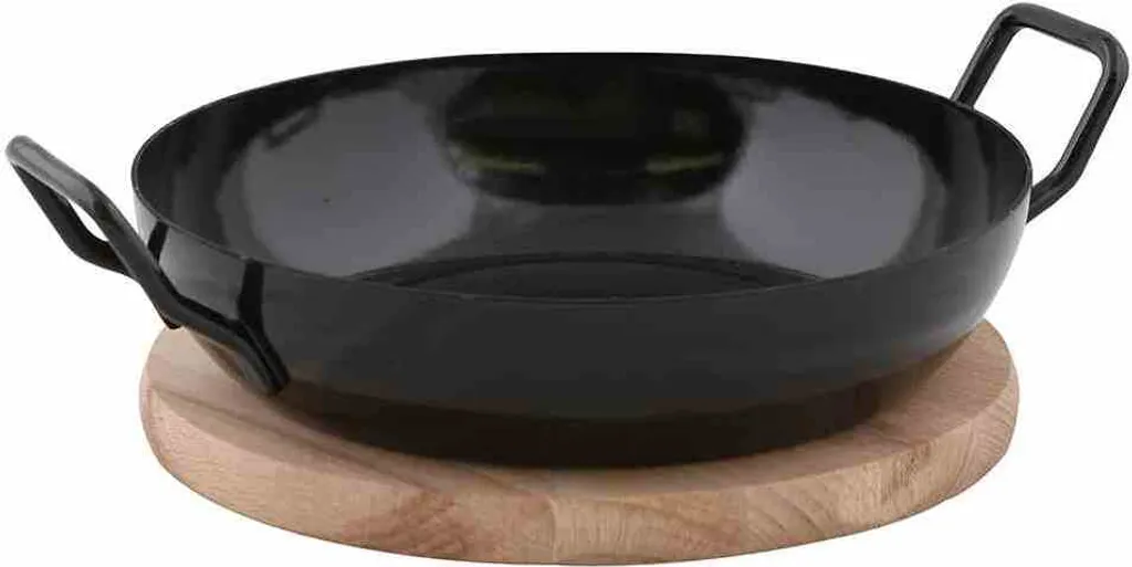 Krüger Schlemmerpfanne Mit Holzteller Aus Stahl Beschichtet 20cm