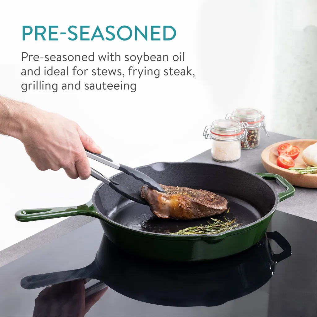 Navaris Grillpfanne Bratpfanne Pfanne Aus Gusseisen – 30cm Gusspfanne Steakpfanne Gusseisenpfanne – Bräter Für Steak Fleisch Gemüse – Emailliert