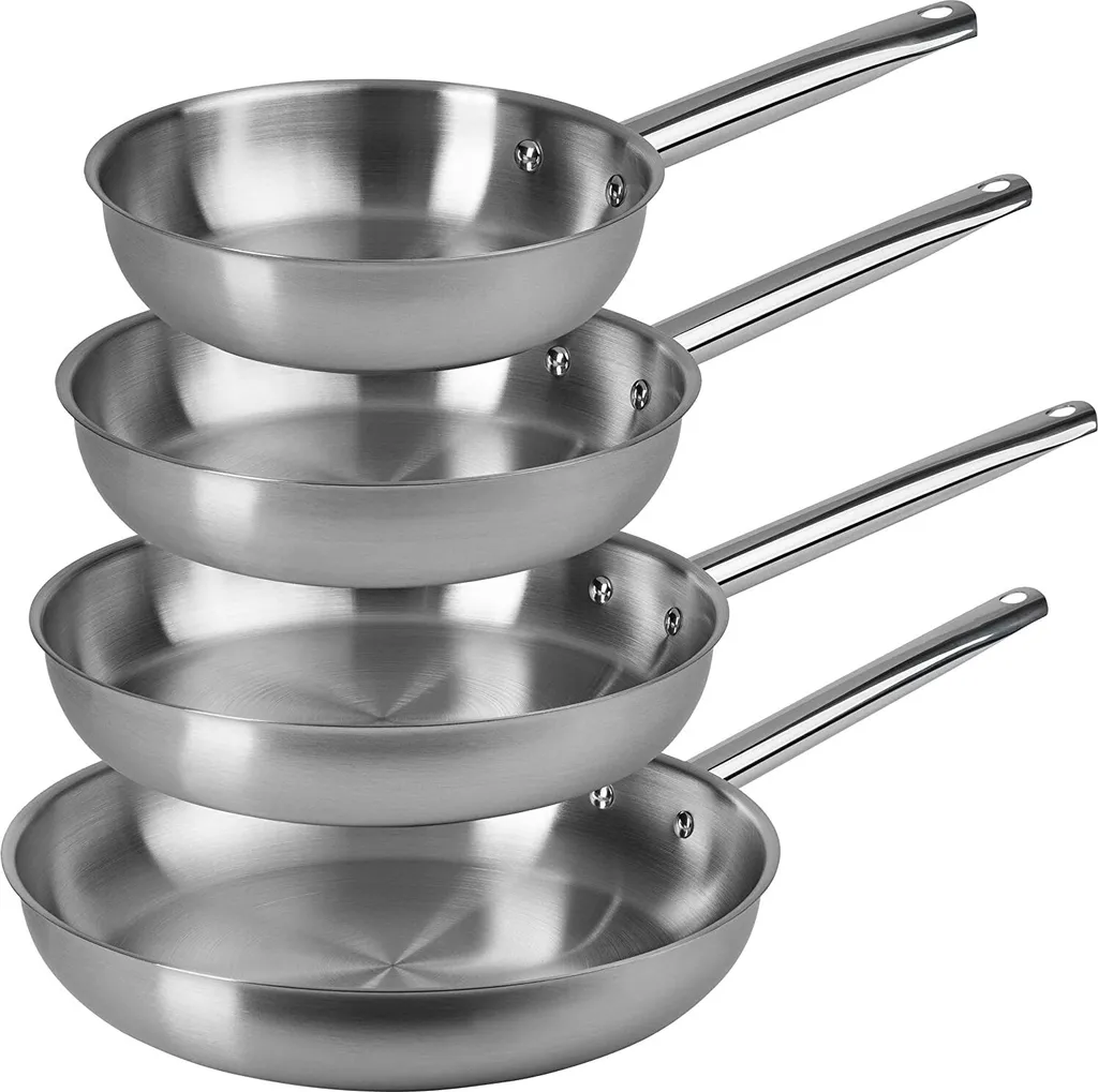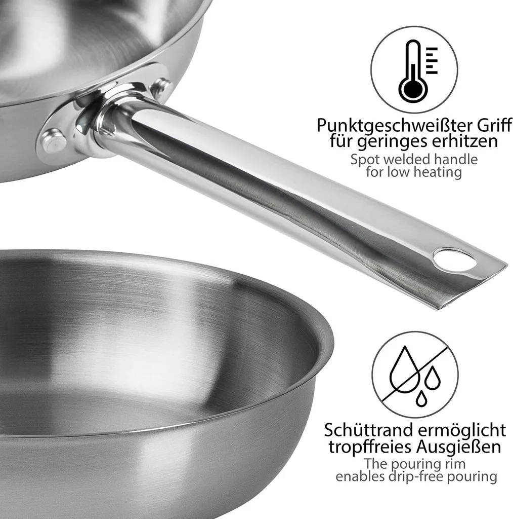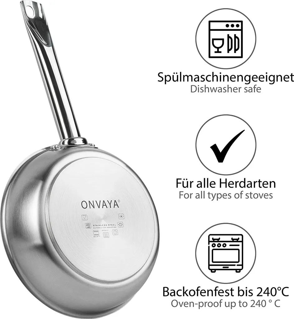 ONVAYA® Edelstahlpfannen-Set | Bratpfanne | Ohne Beschichtung | Induktion & Backofengeeignet | Profipfannen Komplettset | Ø 20/24/28/32cm