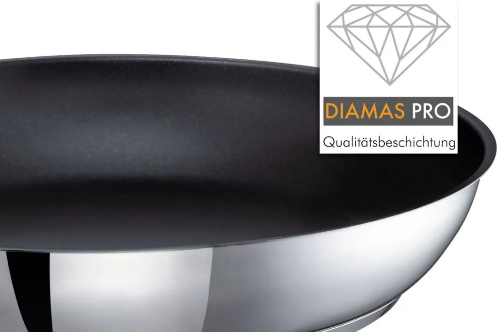 Schulte-Ufer Gastro-SUS Industar DIAMAS Pro Diamantversiegelung Edelstahl Pfannenset 163059-20 -24 -28, Ecotherm® Aluminium-Kapselboden