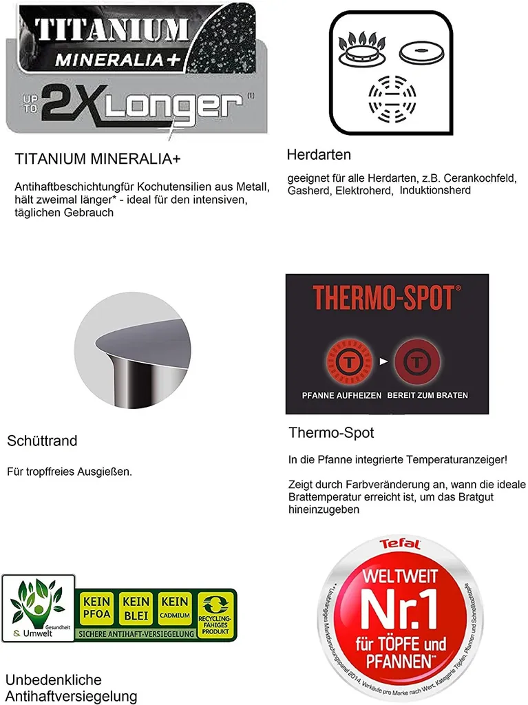 Tefal G13411 Cook Healthy Pfannenset Induktion 6 Tlg, Hohe Wokpfanne Mit Deckel 28cm, Pfanne 30 Cm + 24cm, Alle Herdarten, Spülmaschinenfest, Antihaft-beschichtet, Wok & Bratpfanne Set