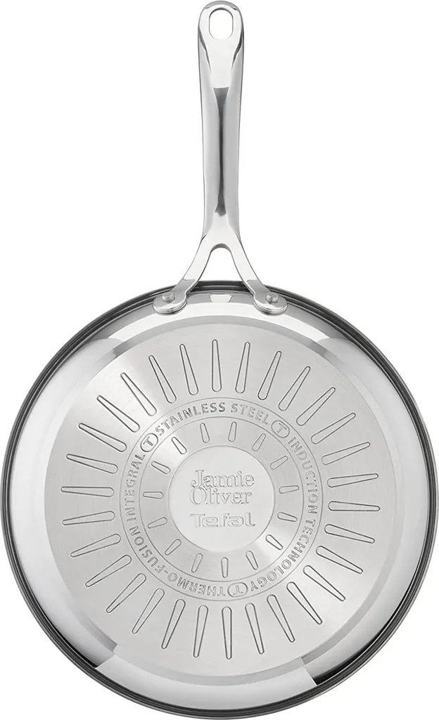 | Zusätzliche Varianten | Tefal E30402 Jo cook's direct on – Bratpfanne – silber/schwarz, Tefal E30404 Jo cook's direct on – Pfanne – silber, Tefal Jamie Oliver Cook's Direct On Bratpfanne E30406, 28 cm, Induktionsgeeignet, Edelstahl |